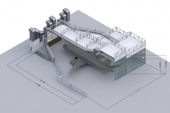 Оборудование камеры окраски СПК размещено в существующем ангаре, расположенном на территории аэропорта. Для нагрева воздуха и отопления используется горячая вода.
